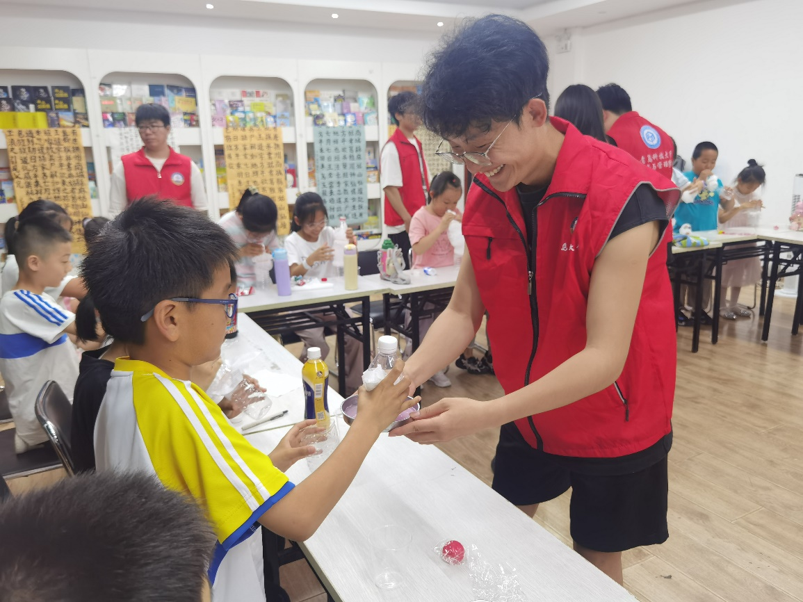 动手环节,志愿者们分组指导小朋友亲自动手操作。小朋友们小心翼翼向将要溢出的水杯里倒水、合作完成“隔空取水”挑战,在“观察-尝试-思考-解惑”的循环中,不仅理解了科学知识,更体验了完整的探究过程。活动尾声的趣味问答环节,孩子们争相抢答,自信分享所学,充分展现了学习成效。