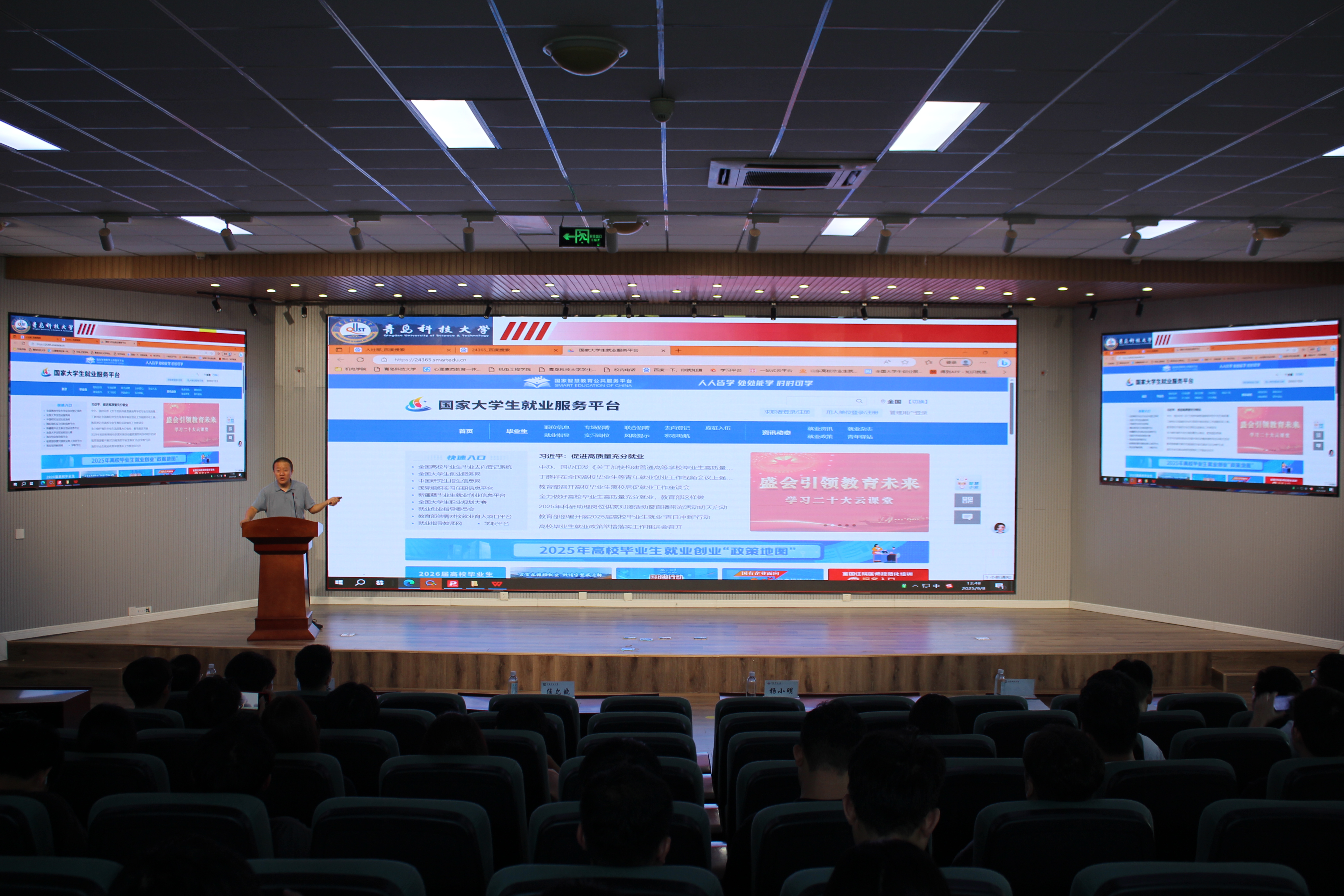 孙一君“就业形势与求职指导”为题,从当前就业形势、公司就业工作情况、求职技巧三个维度进行分享。孙一君首先结合国家及山东省关于高校毕业生就业的最新政策,强调“稳就业”“保就业”的政策导向。孙一君通过详实数据指出当前就业市场的整体态势,介绍了MK体育官网2024届、2025届毕业生就业整体情况,尤其是MK体育研究生的毕业去向分析,毕业生在万华化学、赛轮集团、软控股份等知名企业的就业分布,为同学们树立就业信心。最后,孙一君聚焦研究生求职痛点,围绕求职渠道、简历撰写等内容进行讲解,指导同学们清晰人生规划,科学研判,明确个人求职路径方向。