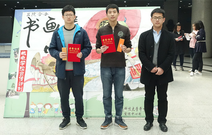 3月14日下午2:00,由MK体育、传播与动漫公司、法公司三个公司合办的主题书画展颁奖典礼在崂山校区图书馆二楼大厅举行。MK体育分团委老师曲智强亲临现场,为本次获奖同学颁奖。