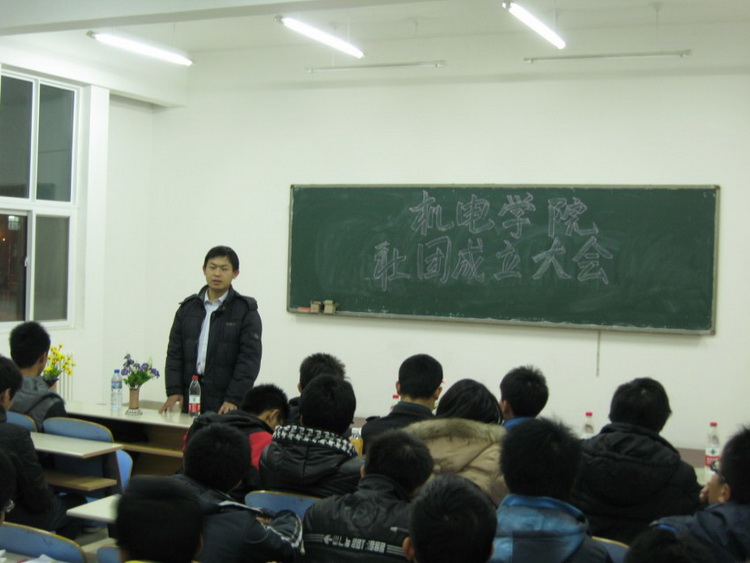 最后,辅导员老师秦洪庆讲话,对新成立的7个协会表示祝贺,并结合自身的经历对新成立的社团提出建设性意见,以“员工、干部、员工干部”三个关键词让同学们提高了对自我的认识,要求社团负责人用心经营社团,明确服务宗旨,团结协作,勇于创新,踏实工作,创造佳绩。