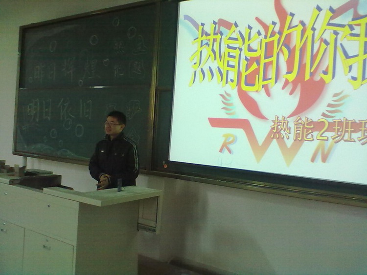 班会在班歌《热能的你我》中拉开了帷幕。此次班会由王栋同学主持。首先班长张帅刚总结了前一段班级工作情况及在公司活动中取得的成绩,同时用PPT向大家展示了热能112班的昨日辉煌,展现了热能112班活泼可爱的一面。接着辅导员与大家互动,辅导员点名同学们上台发言,被点名的同学从容镇定的讲述了自己上大学以来的生活变化,感受,自己有趣的经历等等。随后学习委员毛燕敏为大家解答了关于学分方面的疑惑,强调了挂科的严重性,同时动员大家冲刺期末,为大家讲了一下考试模式以及在未来的一个月的复习计划,同学们纷纷提出自己在学习方面的困难和希望,课代表针对性的为大家做了讲解。随后王栋同学播放了一段励志视频《那一年的我们》,在场的同学都被该视频深深地触动了。大家决心以后好好学习,不虚度光阴,珍惜父母的血汗钱,好好孝敬父母。最后秦洪庆老师总结:结合自身的经历向大家交流了学习经验和感受,同时向同学们提出了两个要求:积极参加活动并从中取得经验,在活动中锻炼自己,培养自己的受挫能力;要努力学习,取得优异的成绩。他指出在最后的一个月里要合理安排时间,在较短的时间里提升自己,努力在期末中取得优异的成绩。最后,他要求大家严格要求自己,诚实答卷拒绝作弊,并结合案例向同学们讲述了作弊后果的严重性,要求同学们树立良好的学风。