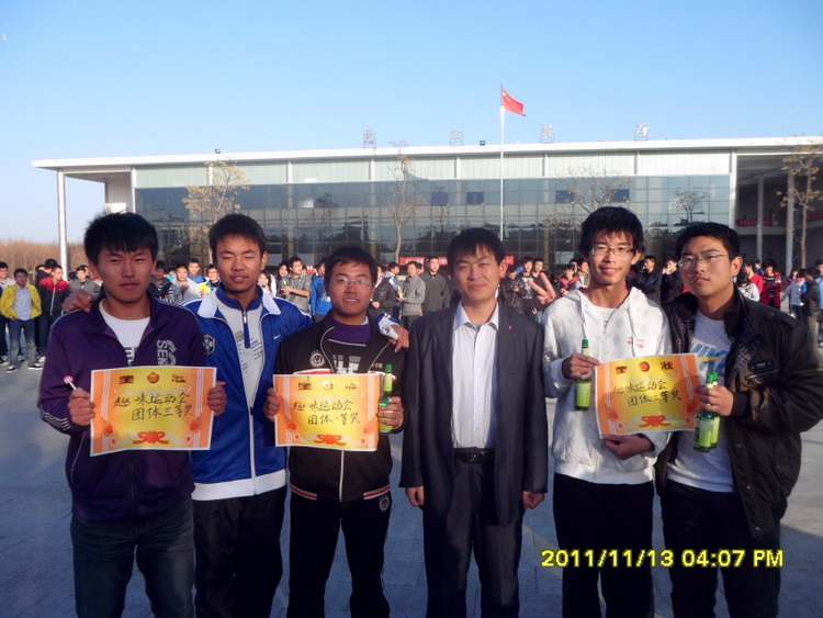本次趣味运动会比赛项目丰富多彩,有扣!扣!扣!、多人多足、拼尽全力、袋鼠搬家、“瞎子”背“瘸子”等比赛项目,其中既有个人项目又有集体项目,给同学们开辟了充分展示自我的空间。运动会以“健康、和谐、奋进”为主题,同学们表现出朝气蓬勃、奋发向上的精神风貌,激烈的气氛将比赛推向一个个高潮。整个活动洋溢着“合作、分享、快乐、健康”的气氛,场上选手热情参与、默契合作,场下观众呐喊加油、气氛热烈。尽管部分班级同学在有些项目进行中因配合失误导致落后,但灿烂的笑容依然挂在他们脸上,名次在这里已经不再是最重要的,内心的快乐喜悦才是大家所期望共享的。整场趣味运动会持续了两个半小时,真正让每一个参与其中的同学得到身与心的锻炼,感受运动传递的健康理念。最后,经过激烈角逐,共评出12个单项奖,能源111班获得团体一等奖,船舶111班获团体二等奖,机自112班获团体三等奖。秦洪庆老师为获奖的个人和班级颁发奖状和奖品。