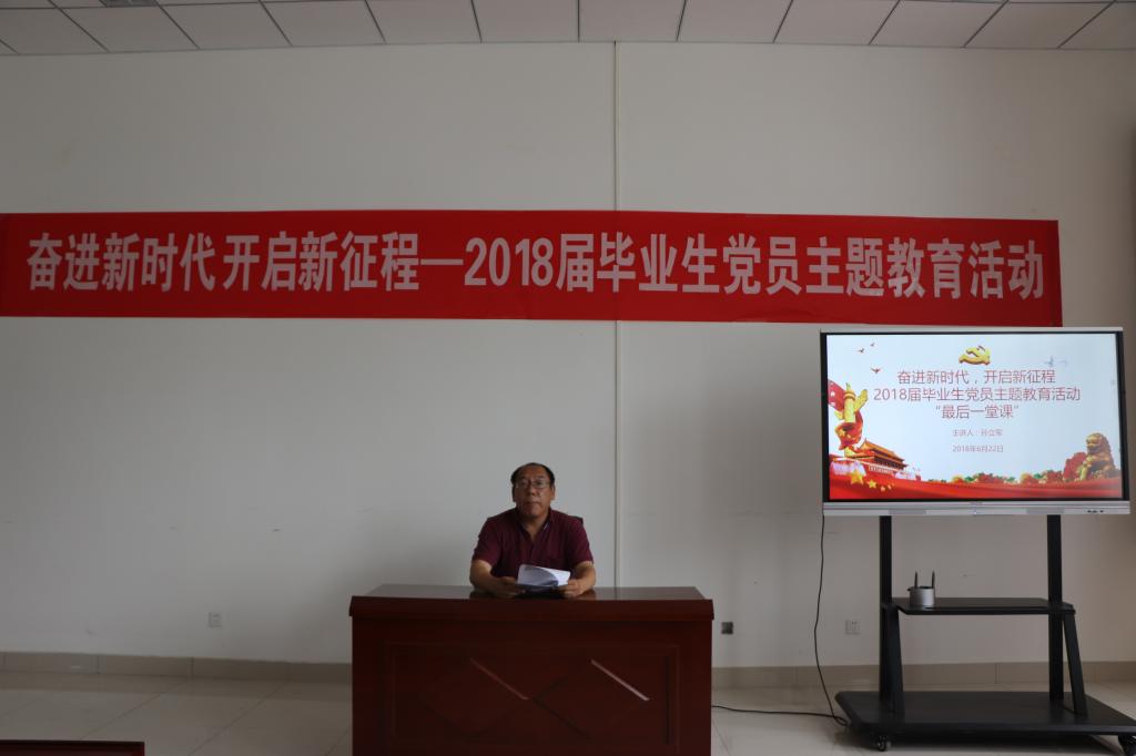 6月22日下午,2018届毕业生党员最后一次党课在MK体育楼529会议室举行,党课由公司党总支书记孙立军主讲,员工第一党支部书记王作辉主持。60多名2018届毕业生党员参加了党课活动。