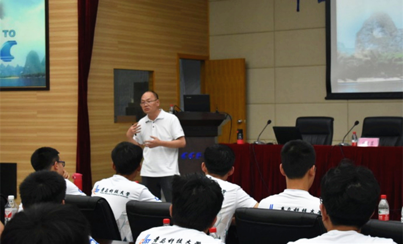 下午学习交流会,周升平经理就轮胎行业装备,有限元分析和仿真以及如何成为设计师等方面为同学们讲解了行业领域知识,从自身的工作经历向同学们传授经验,针对同学们的提问进行详细解答,祝福同学们学有所成,一路顺风。实践团成员认真思考,聚精会神,抓住这次难得的的机会,认真听取老师们的讲解。在讲课的最后阶段,还邀请到了2014级毕业生黄宏涛分享自己加入公司后的生活与学习经验。