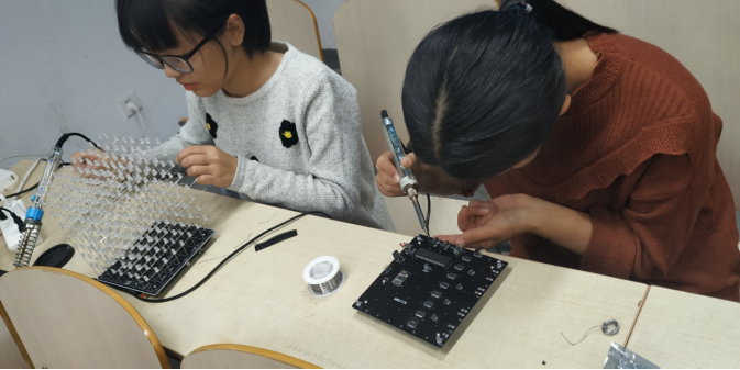 焊接活动中同学们热情洋溢,激情澎湃,手中的电络铁仿佛与手融为一体,灵活自如,足以展现了举行一次动手实践的活动是普及科普知识的一种有效方式,能够提高动手能力,激发同学们探索科技知识的兴趣,同时也极大程度地活跃了科协的气氛,更加展现了科技创新协会的精神意义所在!