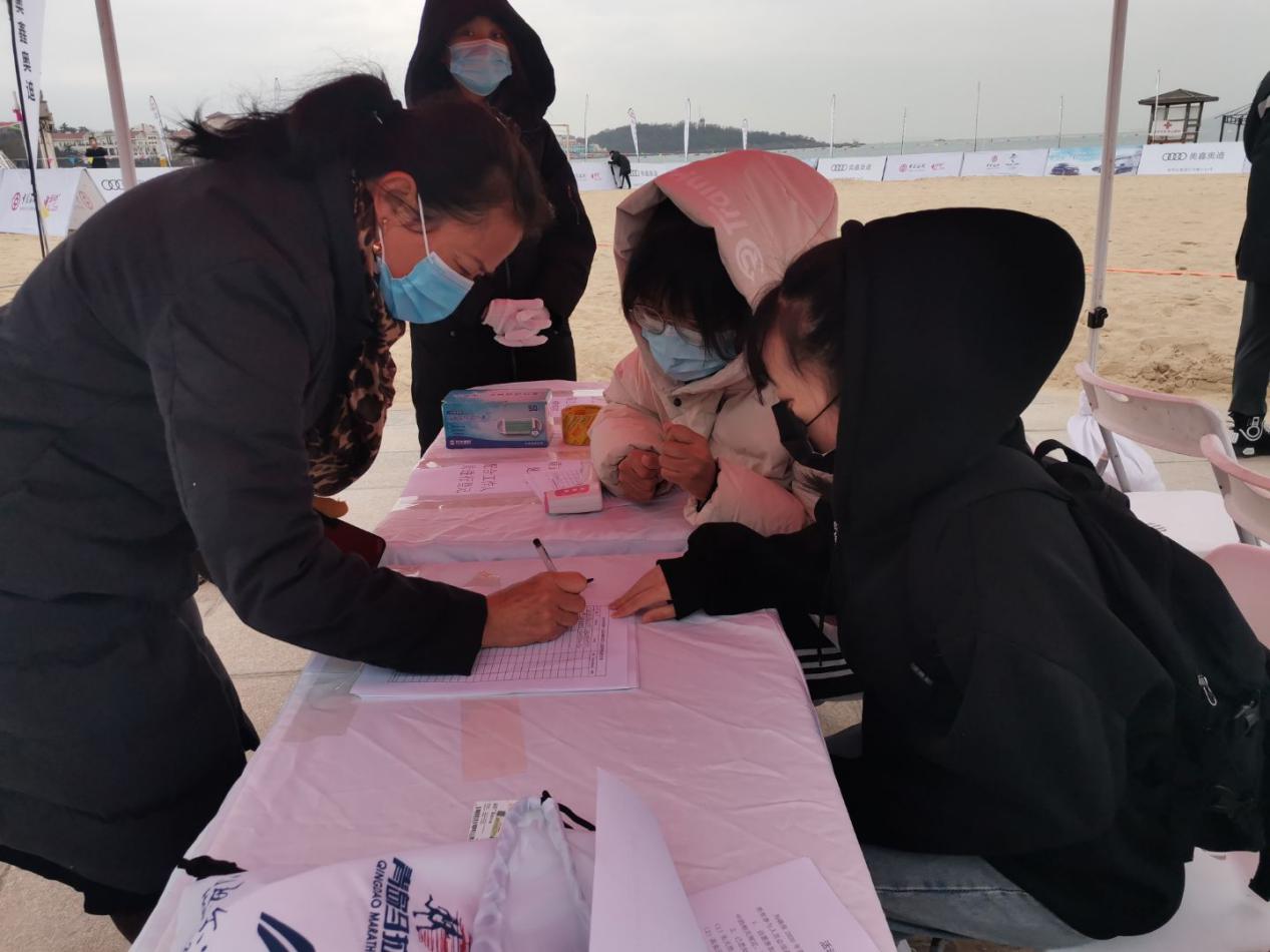 青尘队员们在青岛市体育局活动负责人的带领下,划分为男女生两组开展志愿活动。其中,女生组分为迎宾工作组和秩序维持组进行志愿服务,男生组负责现场设施的搬运以及协助布置的工作。尽管当日的寒风与极低的气温为此次志愿工作带来了极大的挑战,但在工作中,青尘队员们仍然展现出了工作耐心、语言得体、举止礼貌的优秀志愿者形象。青尘队员提前到场,密切配合,为活动的顺利进行提供了保障。最终,在队员们有条不紊的后勤保障工作下,此次沙滩体育节圆满结束,队员们的表现也得到了主办方和参赛市民的共同认可。