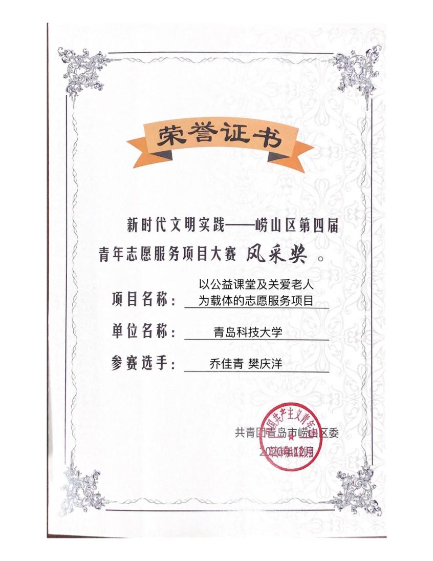 12月17日 ,由青岛市崂山区文明办、团区委和区青年志愿服务联盟联合举办的“新时代文明实践——崂山区第四届青年志愿服务项目大赛”顺利开展。MK体育团委志工部部长胡福超老师带领员工代表乔佳青、樊庆洋,积极参与、认真准备,青尘义工队“以公益课堂及关爱老人为载体的志愿服务项目”经作品申报、资格筛选、项目展示、评审打分等环节,最终获得大赛风采奖。