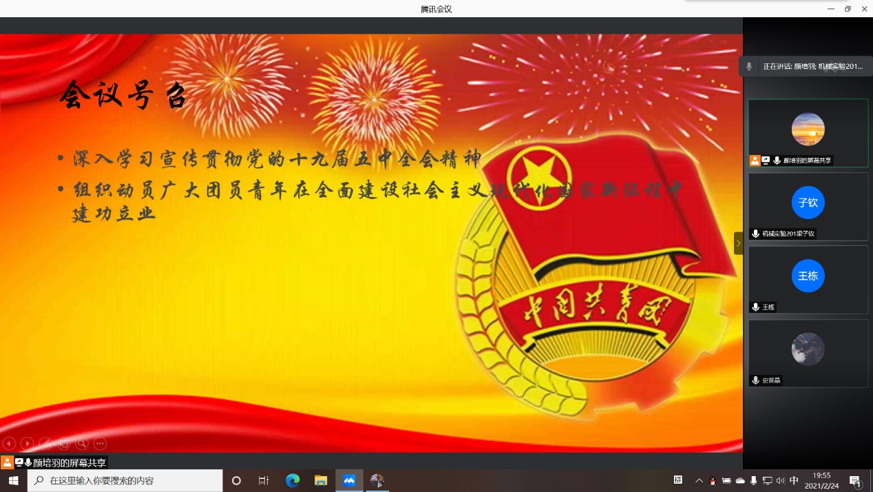 所有团支部纷纷通过腾讯会议、微信视频、qq视频等开展了云端主题团日活动,充分调动同学的青春活力,增强责任感与使命感,同时也对同学的就业提供了很大的帮助。如新能源172、新能源202、智造201、机械实验201、船舶202、船舶182团支部通过线上视频会议的形式学习共青团十八届五中全会精神,视频会议结束后让同学们在班级群里分享自己的感受及收获。ALPS182团支部在团支书张晓楠的组织号召下,通过腾讯会议开展了“青春征程开新局”云端主题团日活动。引导团支部团员青年深入了解共青团十八届五中全会精神,凝聚青年力量,激发广大团员青年的学习热情、创造活力与创新意识,为公司加强团组织建设奠定坚实基础。