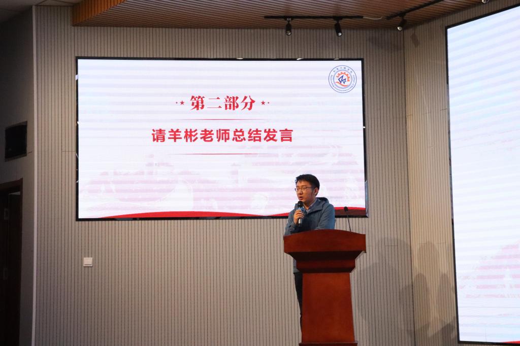 会上,公司团委组织部指导老师羊彬进行了总结讲话。羊彬首先肯定了上学期各支部为公司团的建设的付出和成效,对表现优异的成员进行鼓励。同时指出了上学期各支部在工作中出现的一些普遍性问题,指导同学们提高对自身的要求,并提出了对本学期工作的规划和对各支部的新期望。