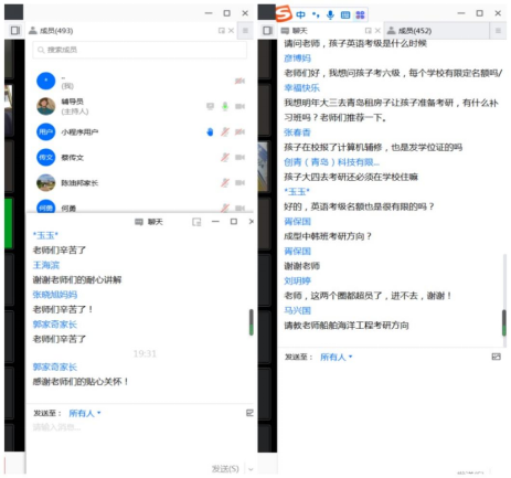 会议最后,公司设置了互动回答环节,家长们热情高涨、积极提问,三位辅导员老师对家长的提问进行了详细解答,此次云家长会在轻松热烈的氛围中圆满结束。