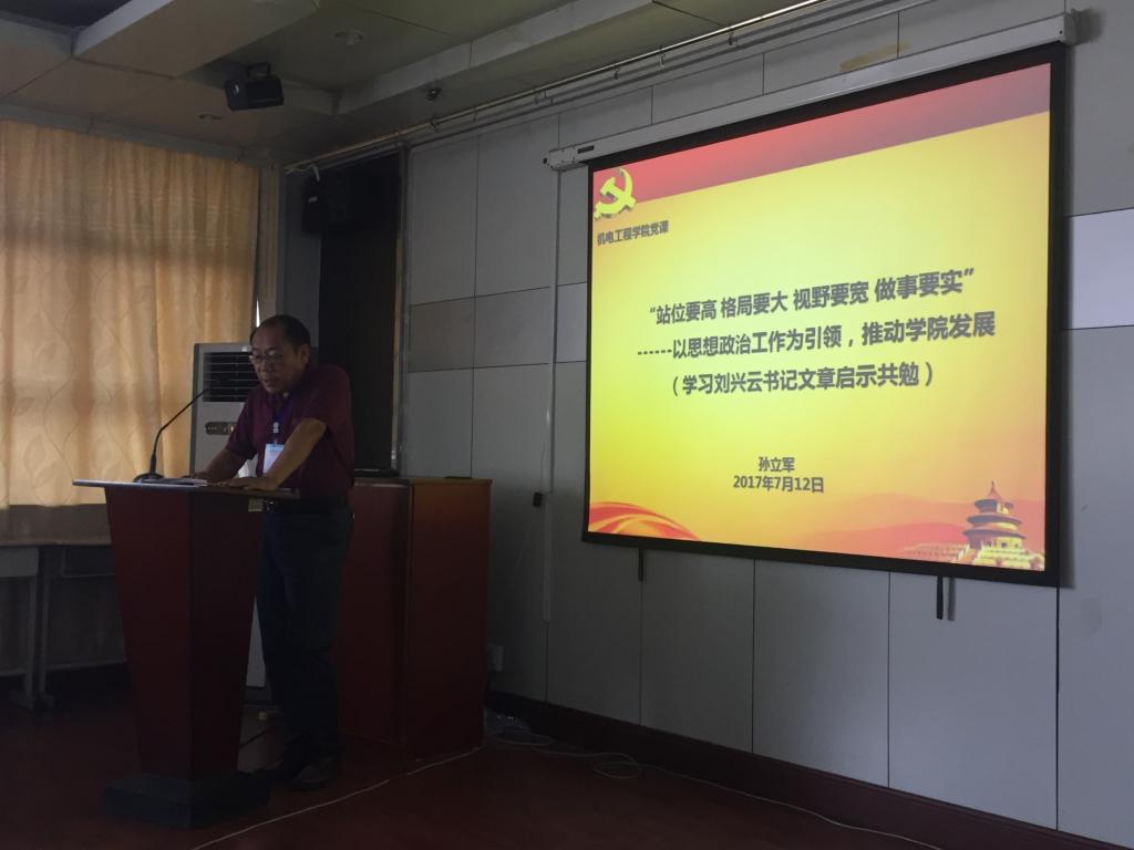 7月12日,公司党总支书记孙立军结合刘书记文章精神用90分钟时间为公司机自系党支部、力学系党支部、办公室综合党支部、高机系党支部党员上了《“站位要高 格局要大 视野要宽 做事要实”------以思想政治工作为引领,推动公司健康发展(学习刘兴云书记文章启示共勉)》的党课。
