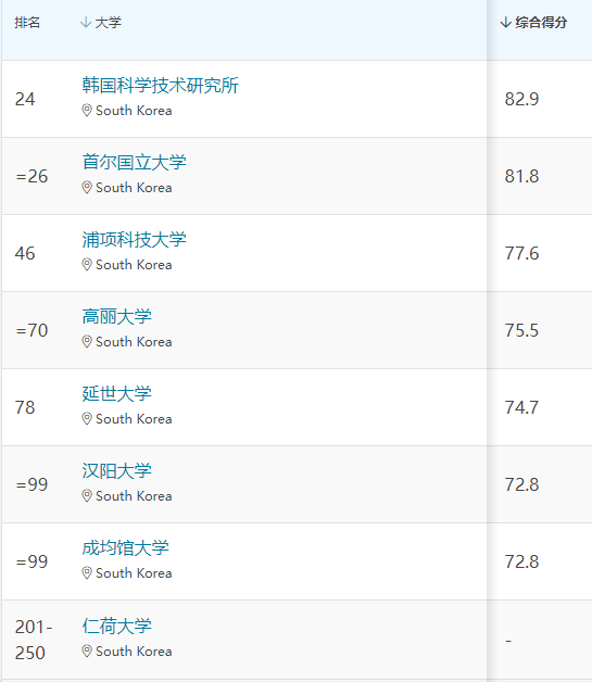 其中,在机械、航空和制造工程领域,汉阳大学世界排名99。