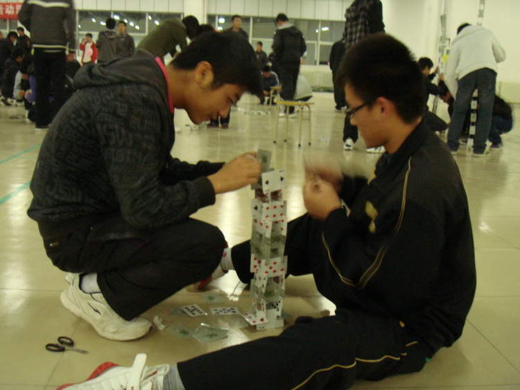 为了弘扬科学精神,激发科学兴趣,培养同学们动手、动脑能力和创新精神,11月15日晚19:00,由MK体育科技创新协会主办的趣味扑克牌搭塔比赛在高密校区惠众餐厅二楼举行。